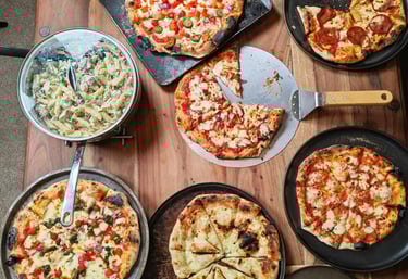 Customized pizza catering for weddings, birthdays, and corporate gatherings, made fresh on-site.